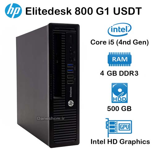 کیس استوک اچ پی HP مدل EliteDesk 800 G1 USDT مجهز به پردازنده Intel Core i5 نسل 4 میباشد. این پردازنده دارای چهار هسته و فرکانس تقریبی 2.90 تا 3.6 گیگاهرتز است. حافظه رم این سیستم USDT موجود در دانش رایانه از نوع 8 گیگابایتی DDR3 بوده و قابلیت ارتقاء تا 16 گیگابایت را دارد. ارتقا RAM این محصول از طریق دو اسلات DDR3-1600 MHz قابل انجام است.